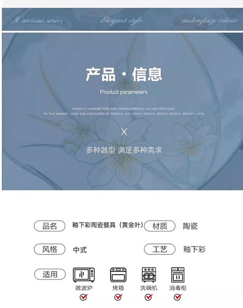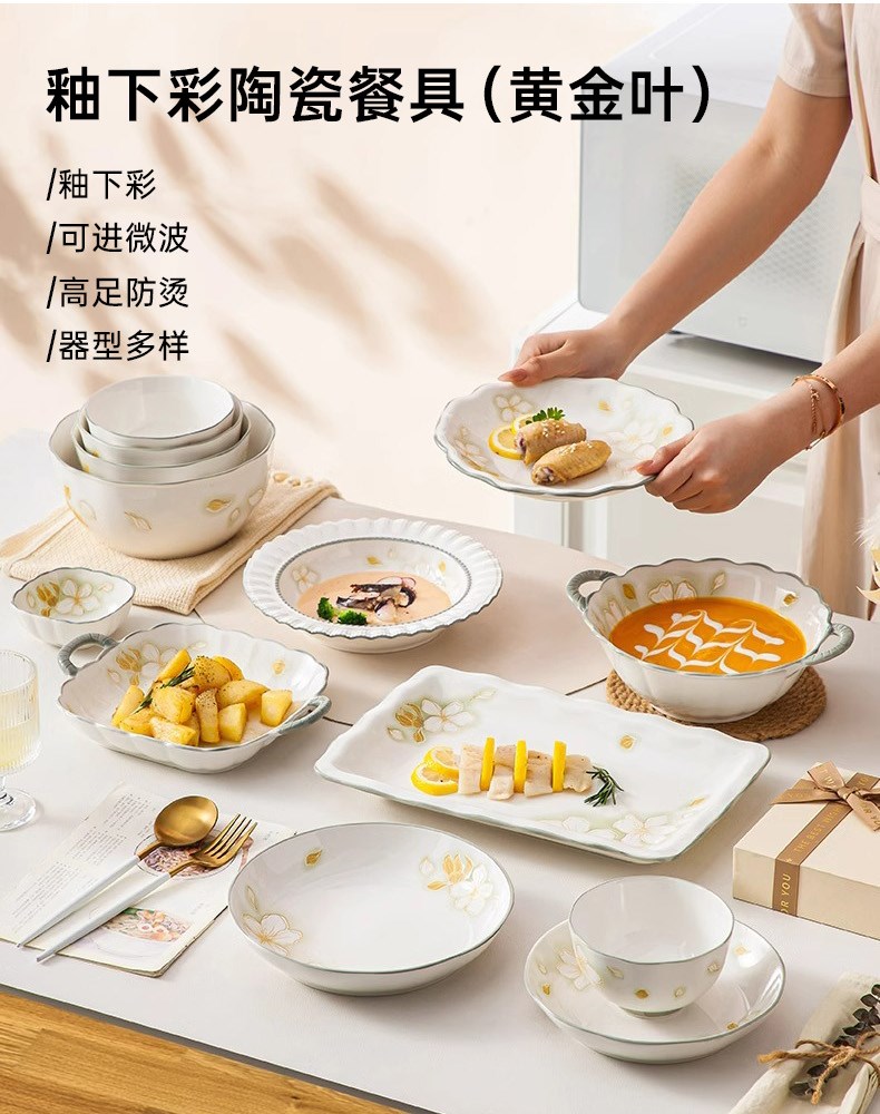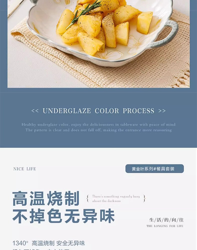 ¥12新釉下彩陶瓷餐具(黄金叶)