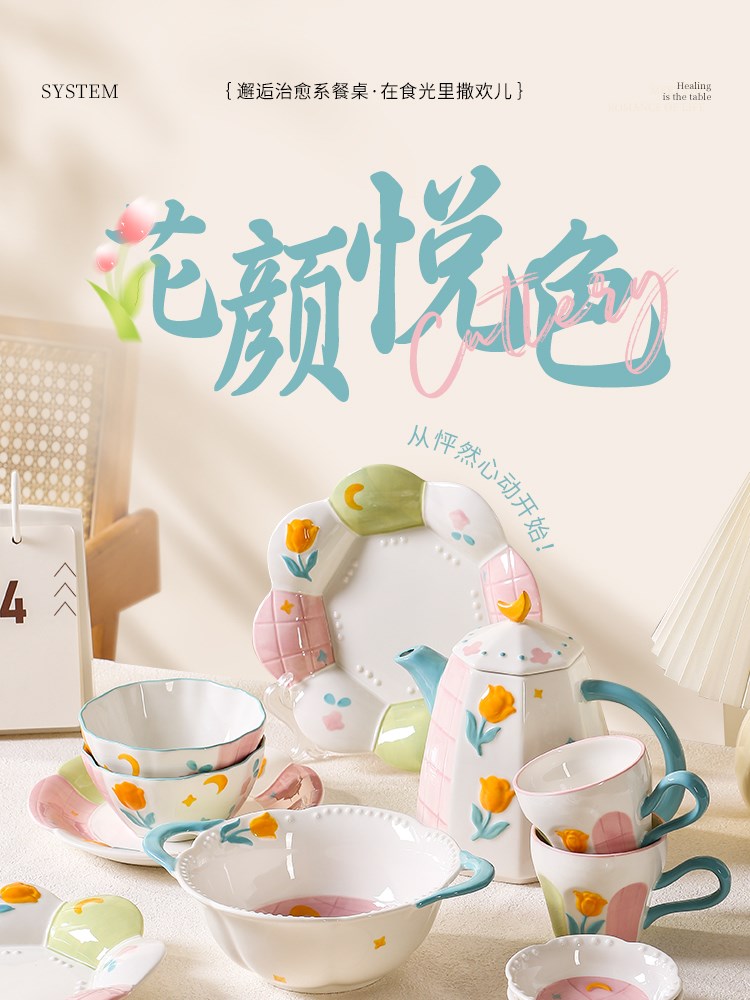 釉下彩陶瓷餐具(花颜悦色)