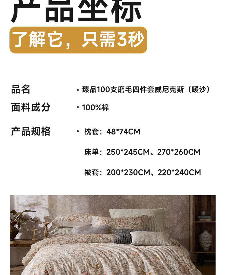 双11狂欢特惠: ¥936 ¥1498新臻品100支磨毛四件套(威尼克斯) 评论数:0条