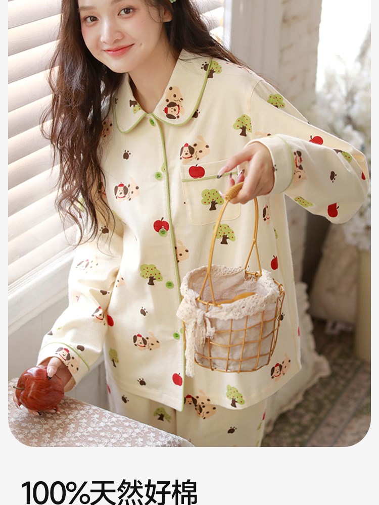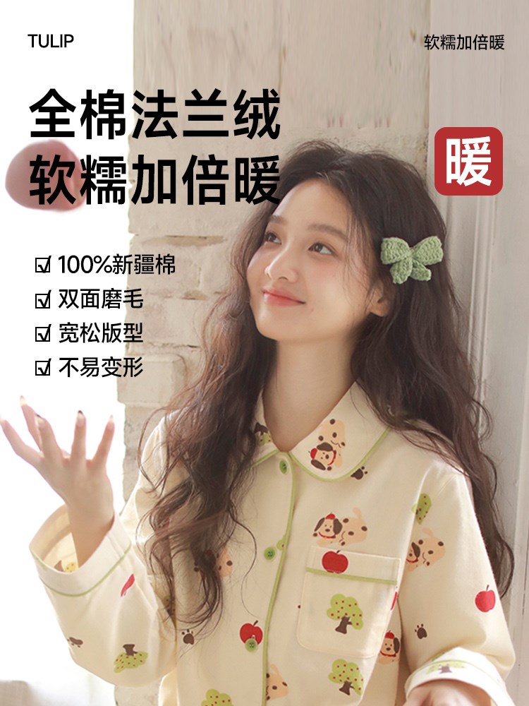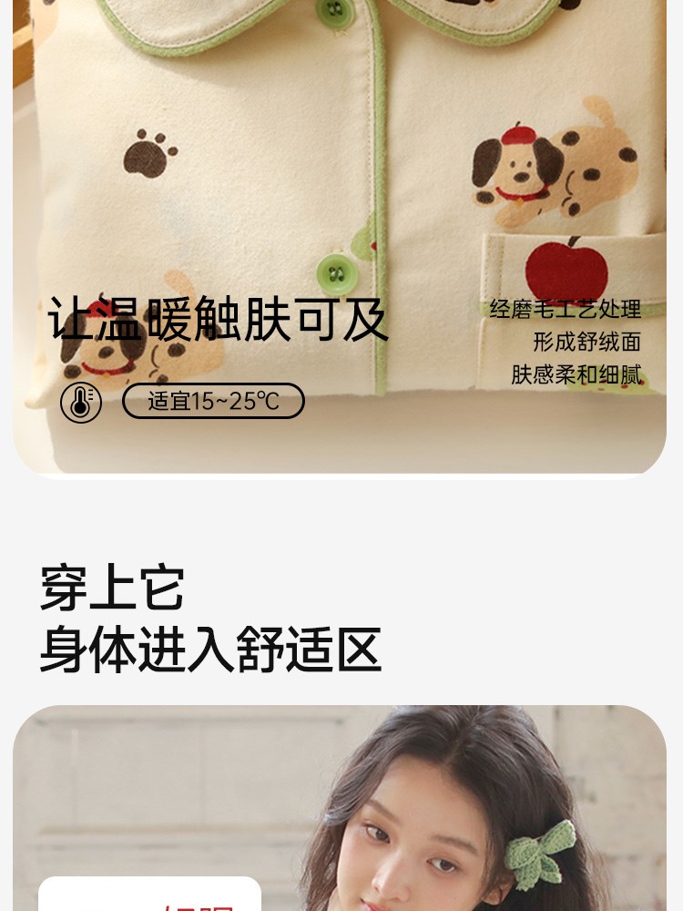 ¥109新全棉法兰绒家居服(森林小狗)