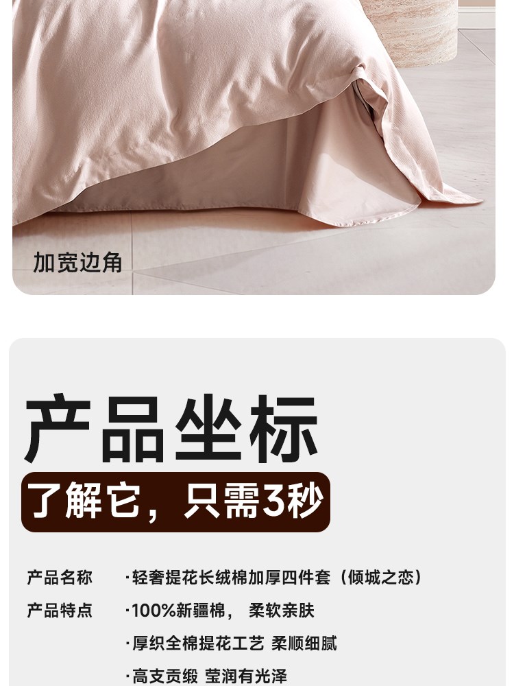 ¥928新轻奢提花长绒棉加厚四件套(倾城之恋)