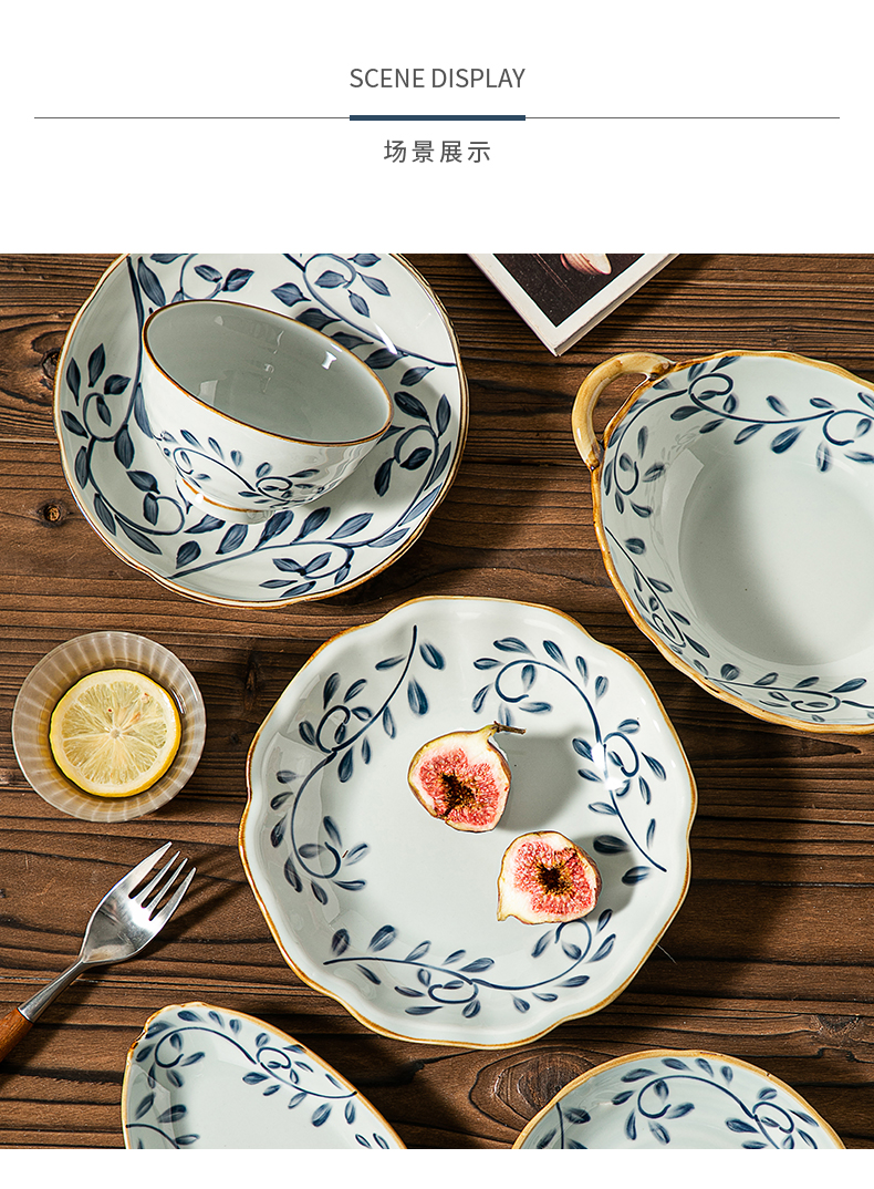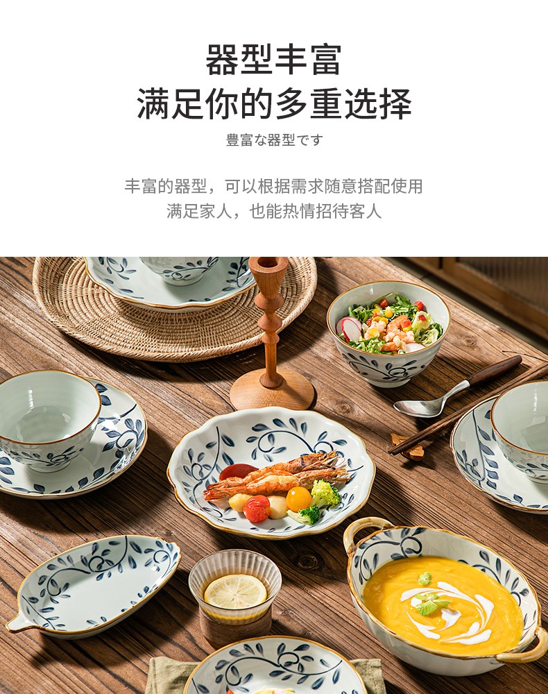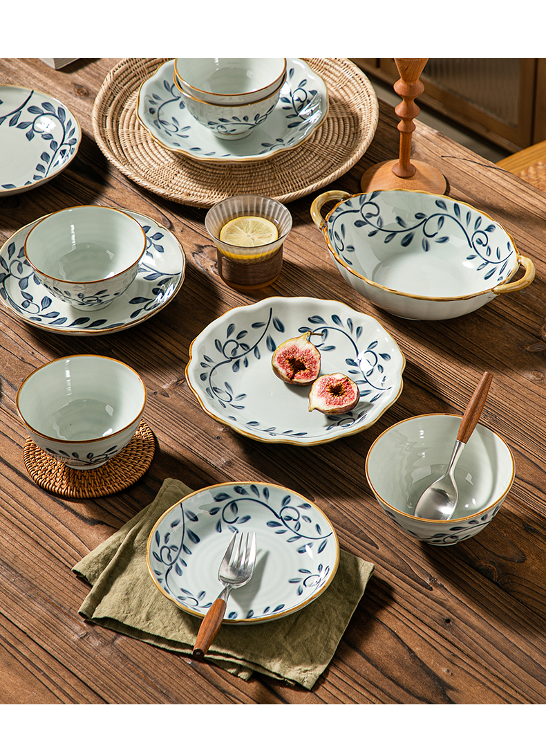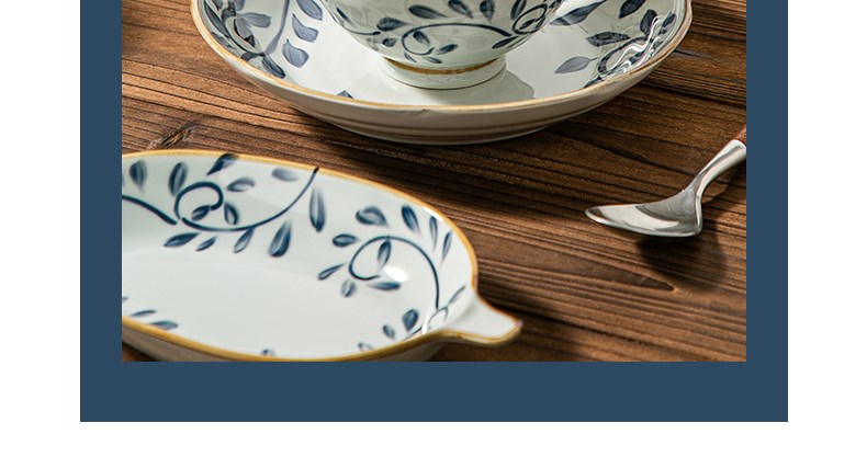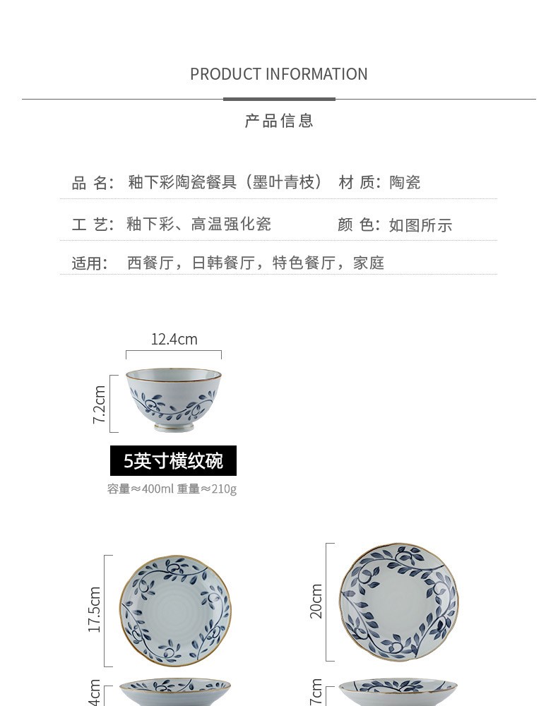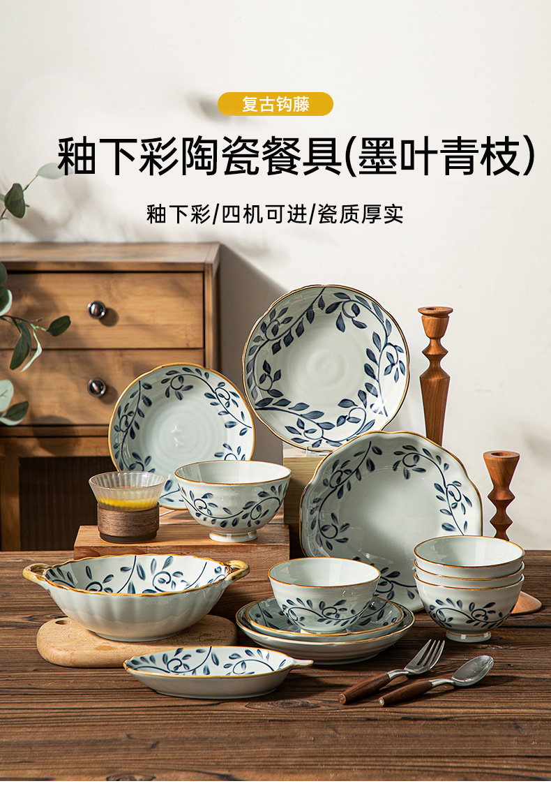 ¥15新釉下彩陶瓷餐具(墨叶青枝)