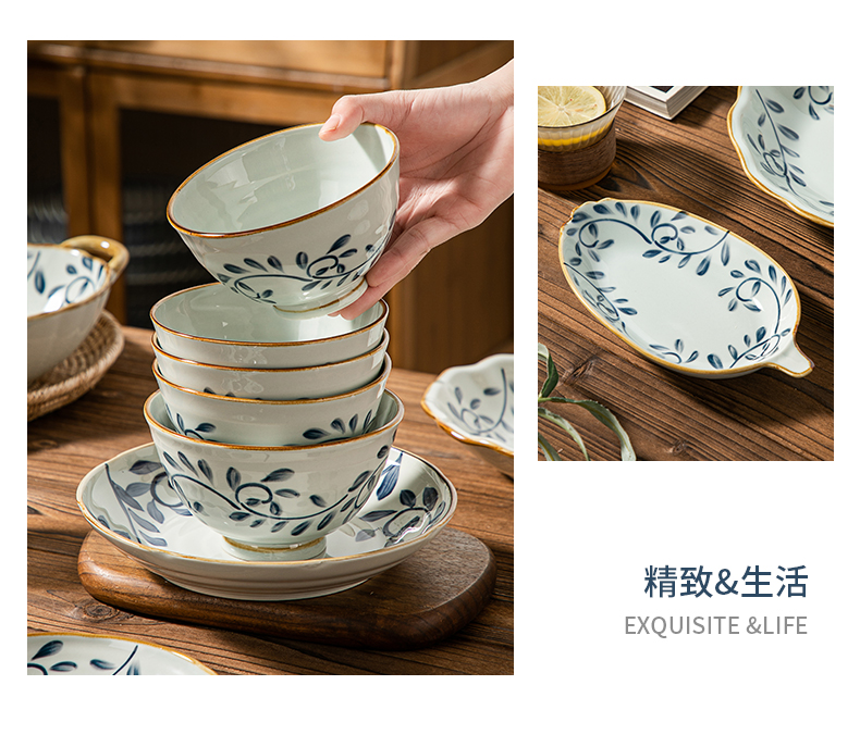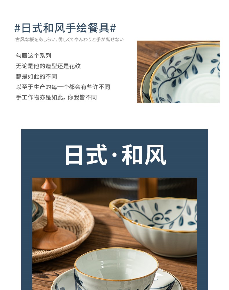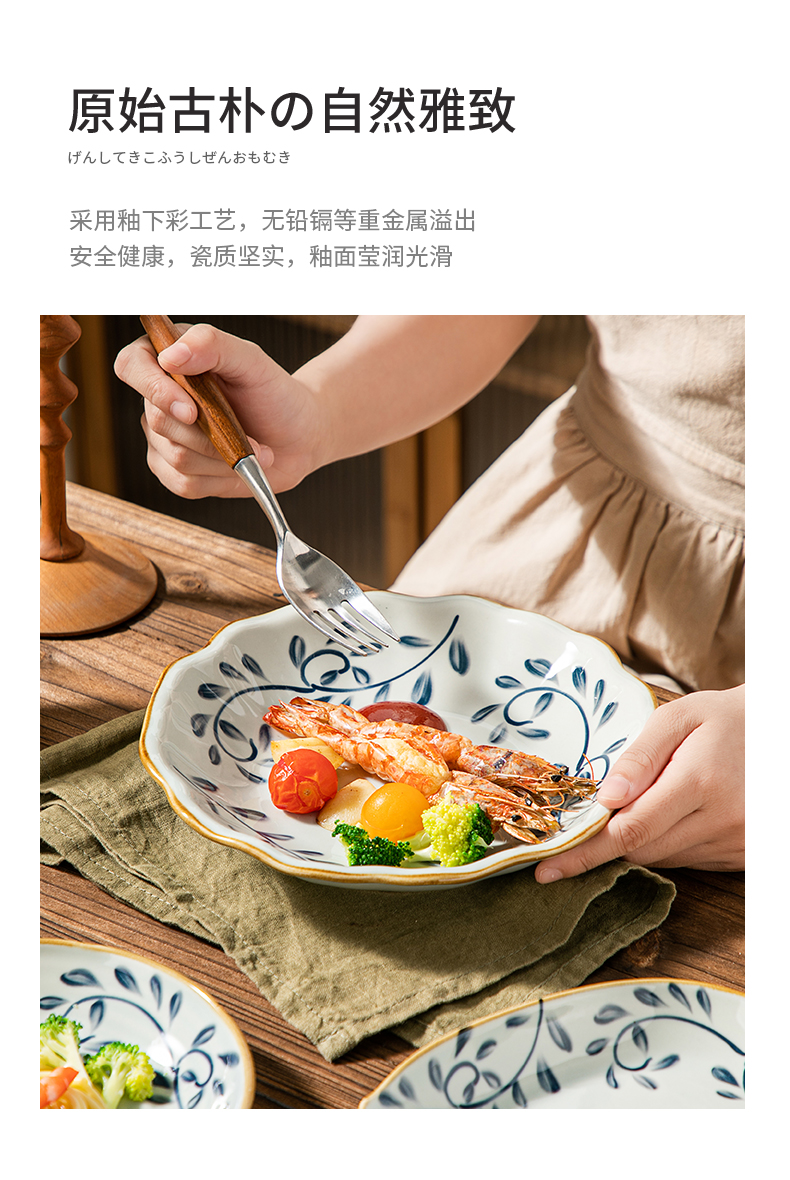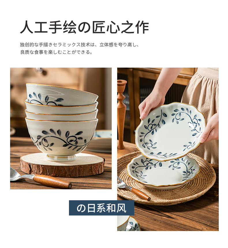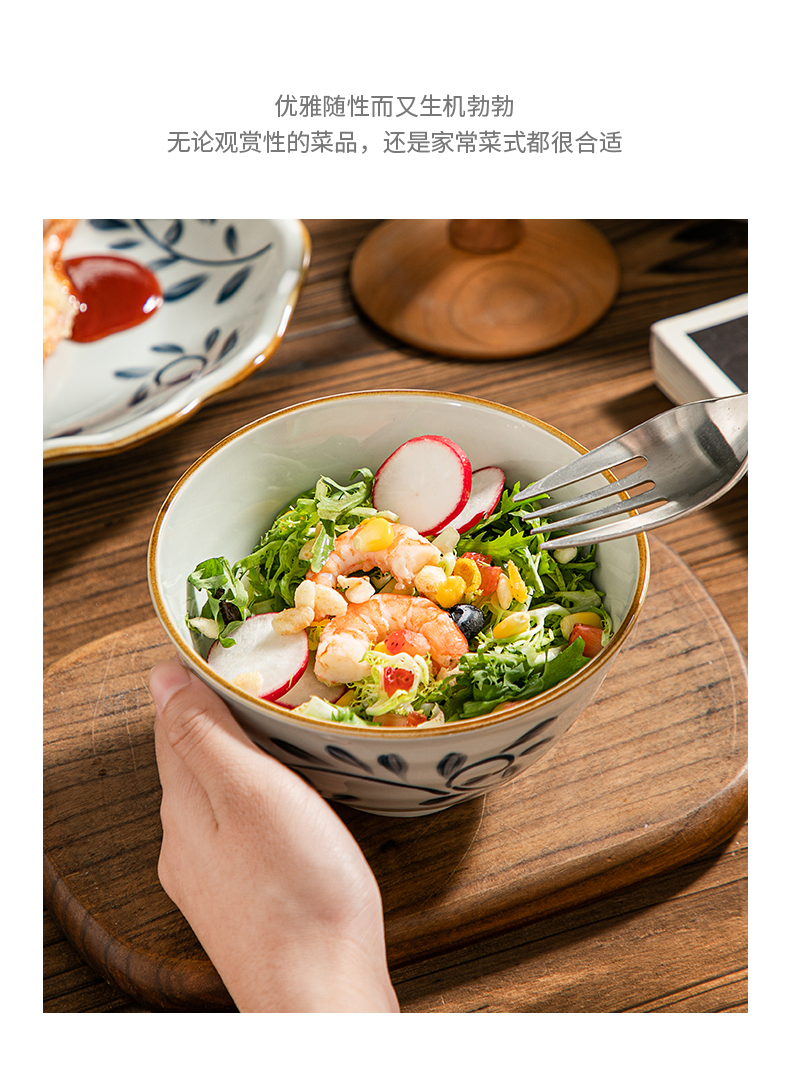 ¥15新釉下彩陶瓷餐具(墨叶青枝)