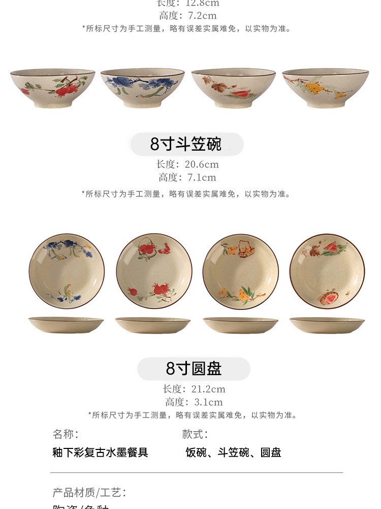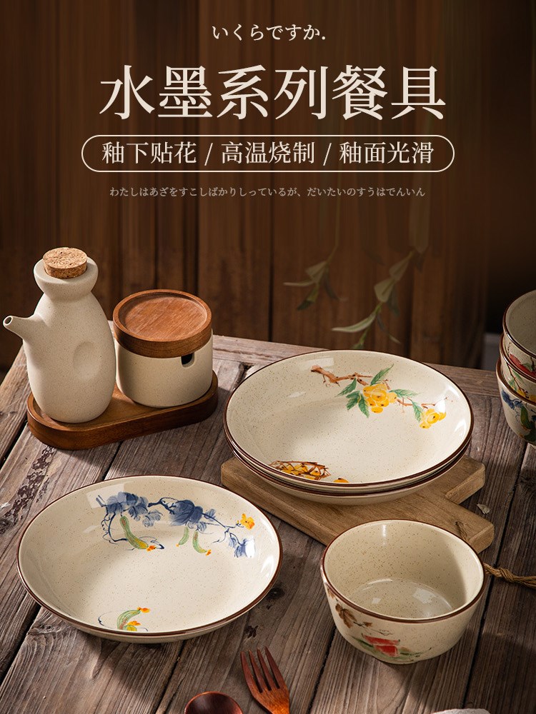 ¥22新釉下彩复古水墨餐具