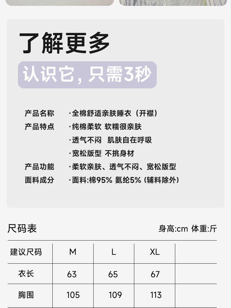¥109新全棉舒适亲肤睡衣(开襟)