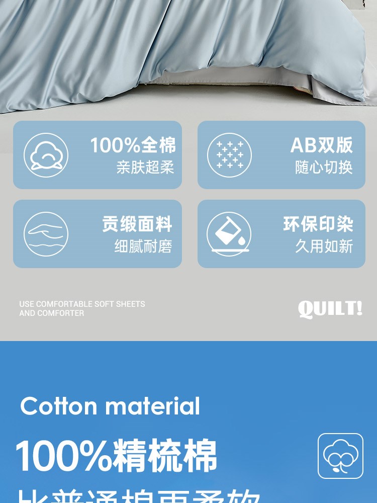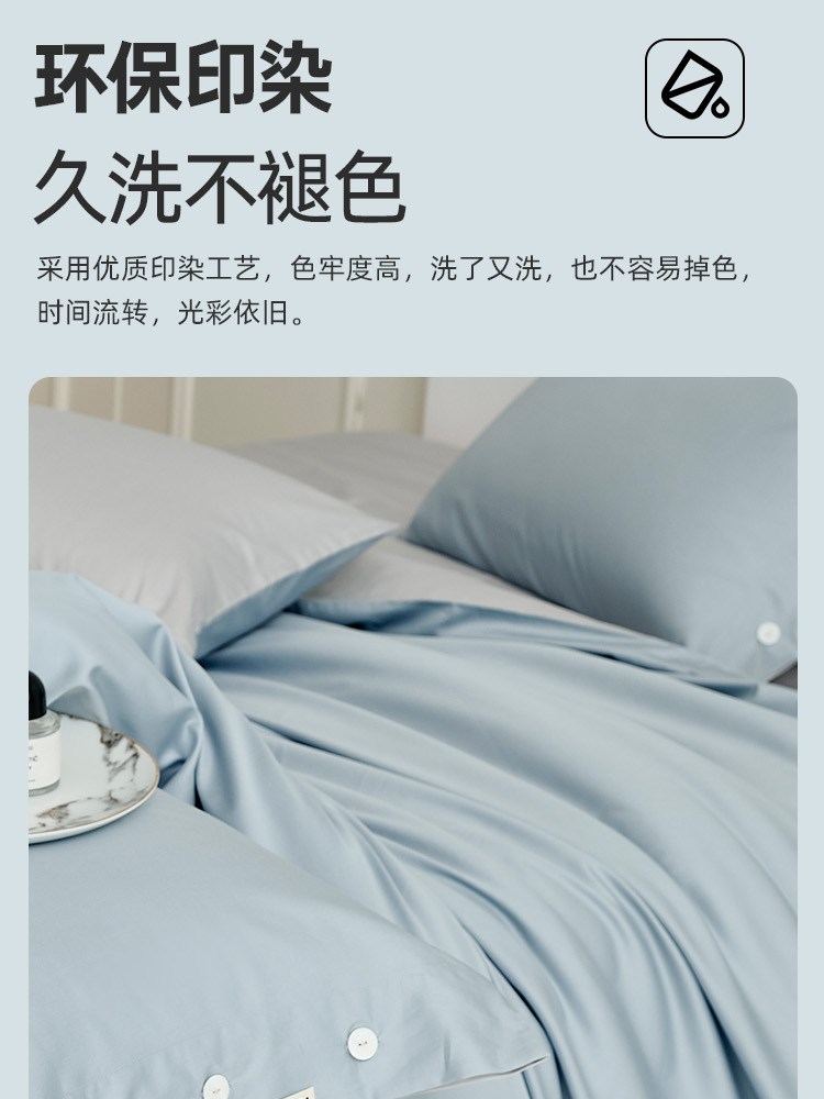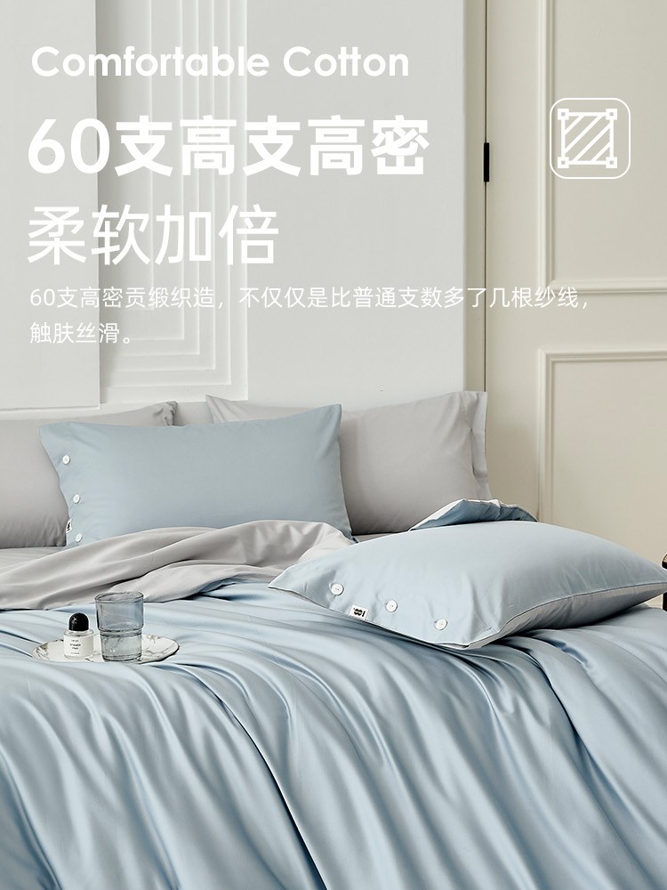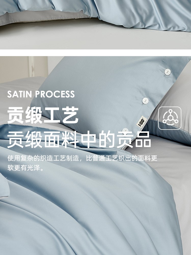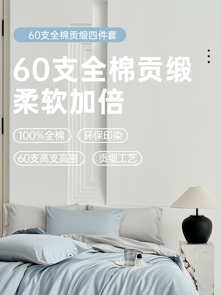 ¥609新60支全棉贡缎四件套(幻境蓝)