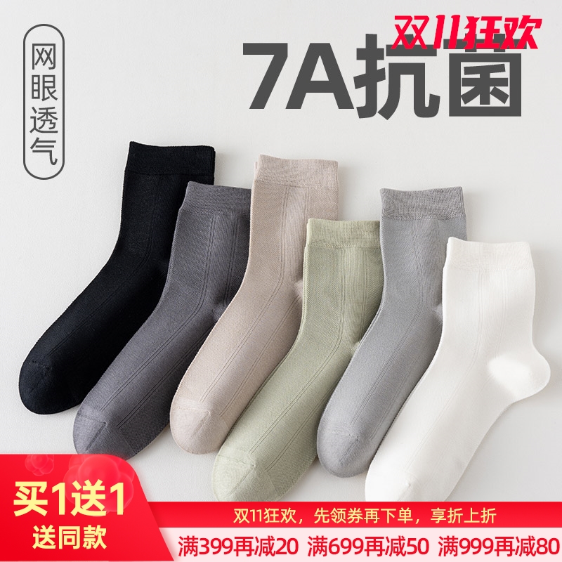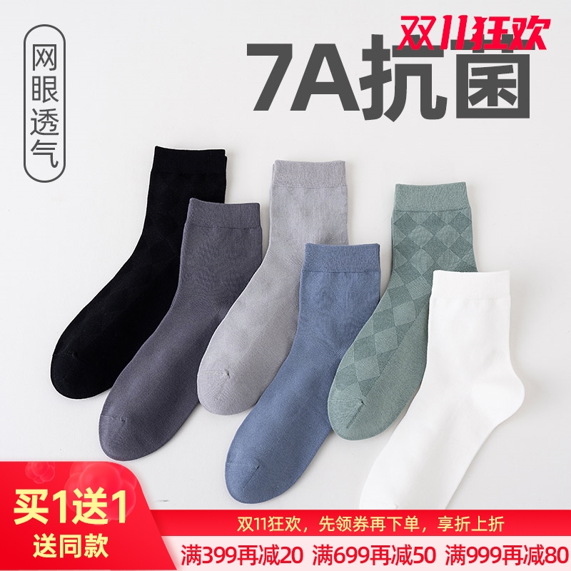 男士休闲网眼中筒袜(纯色)