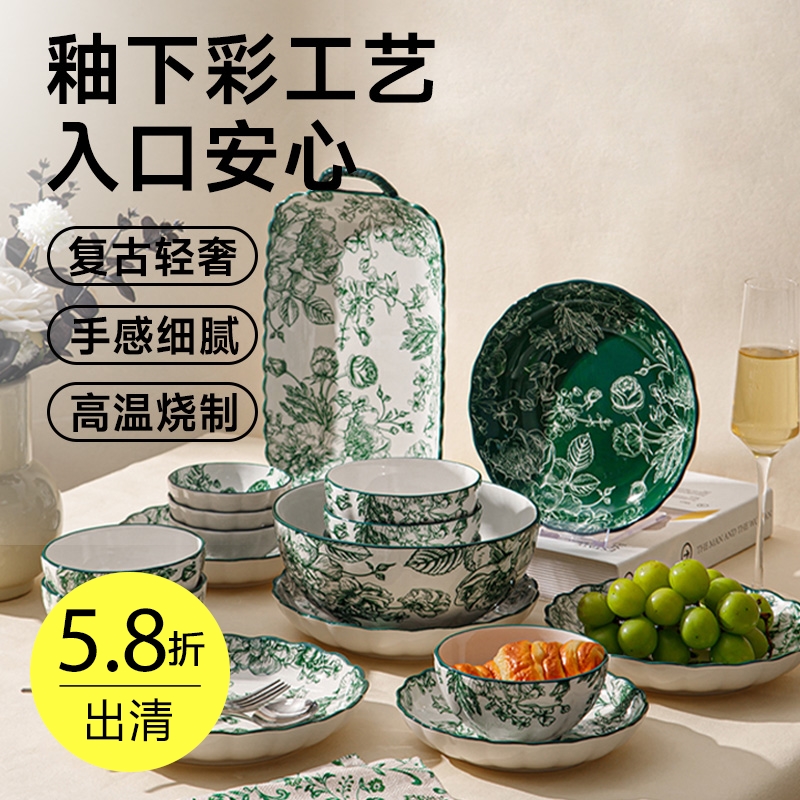 中式美学陶瓷餐具(落日玫瑰)