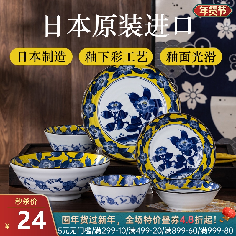 日本制造黄彩椿陶瓷餐具