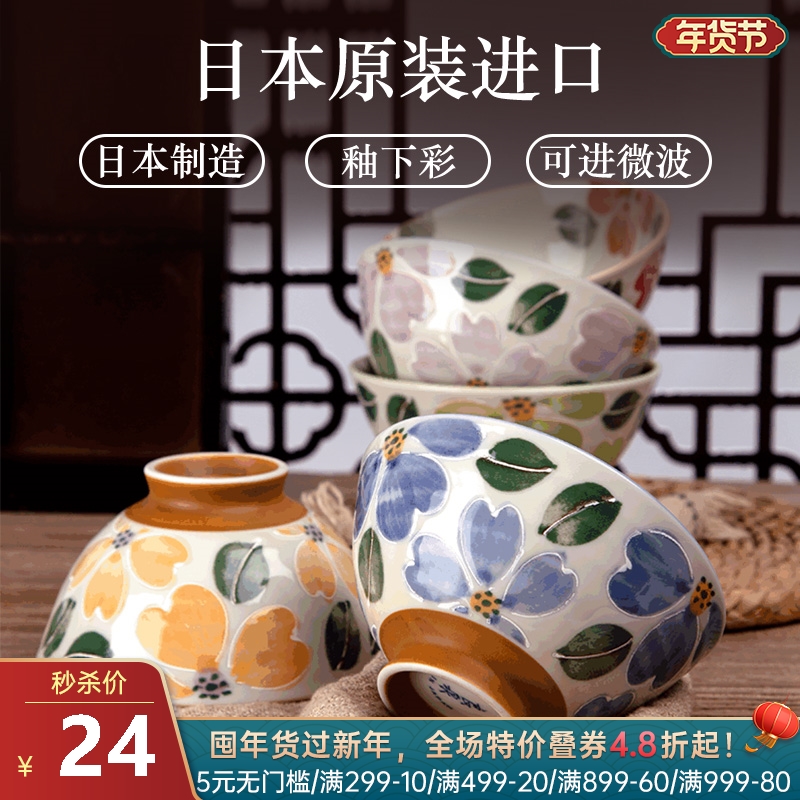 日本制造美浓烧山茶花饭碗