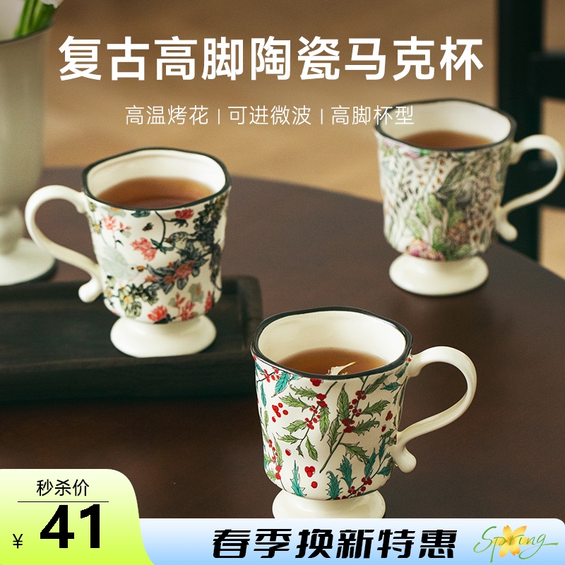 复古高脚陶瓷马克杯