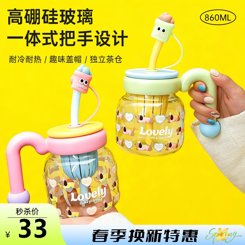 心桃把手耐高温水杯