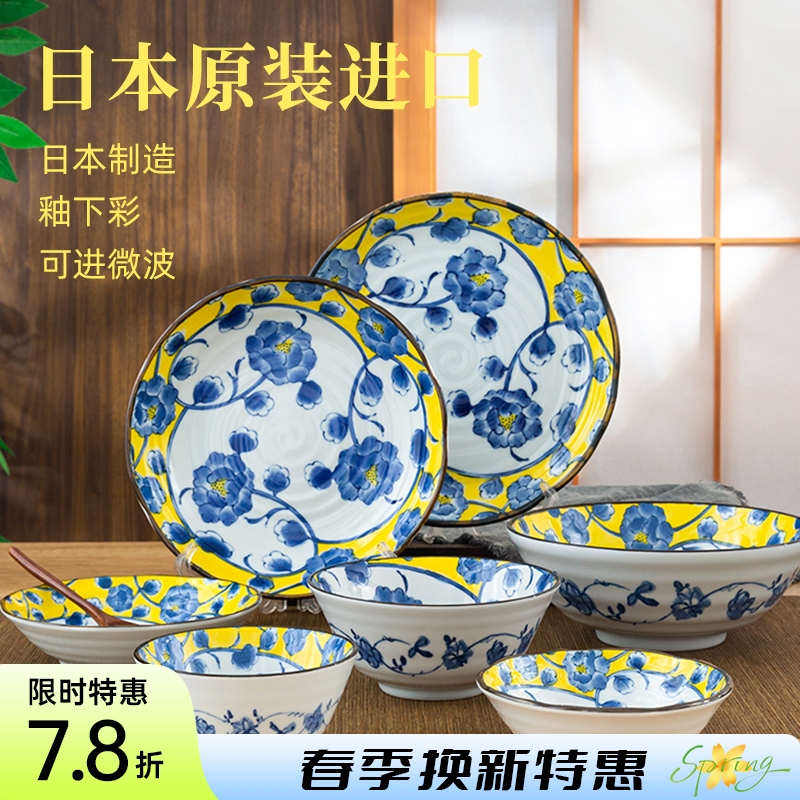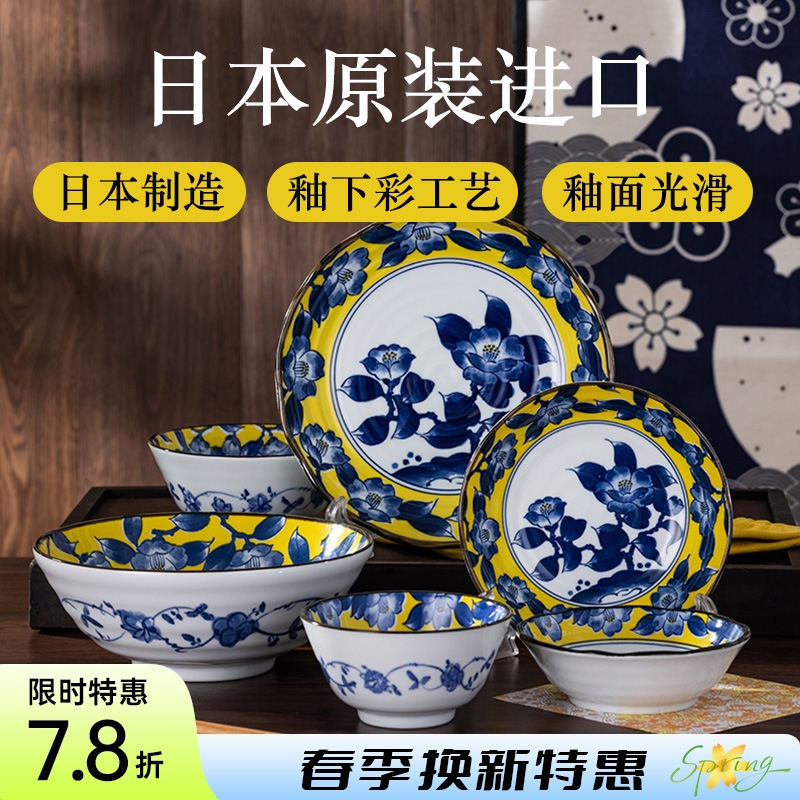 日本制造黄彩椿陶瓷餐具