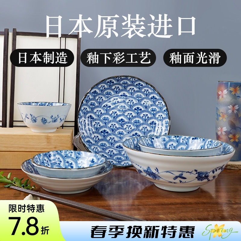 日本制造美浓烧描蓝饭碗