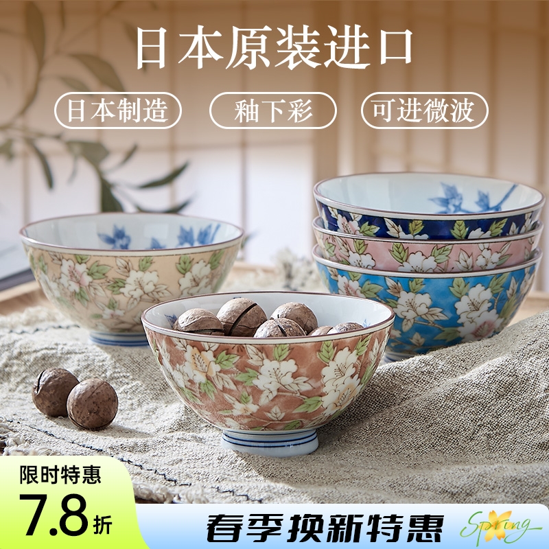 日本制造美浓烧山茶花饭碗