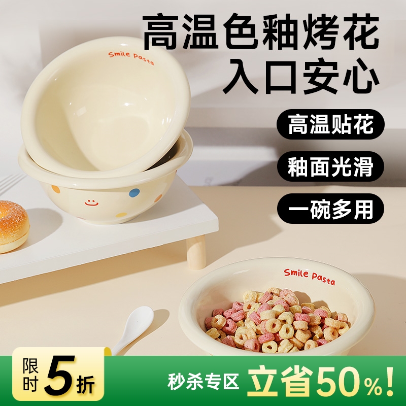 波点豆边陶瓷沙拉碗