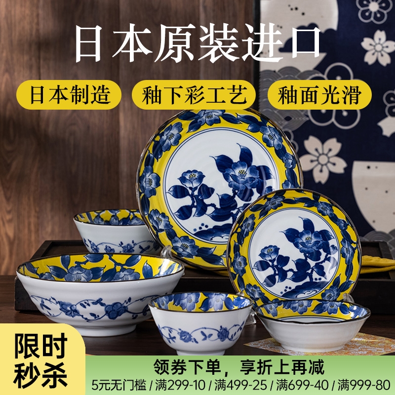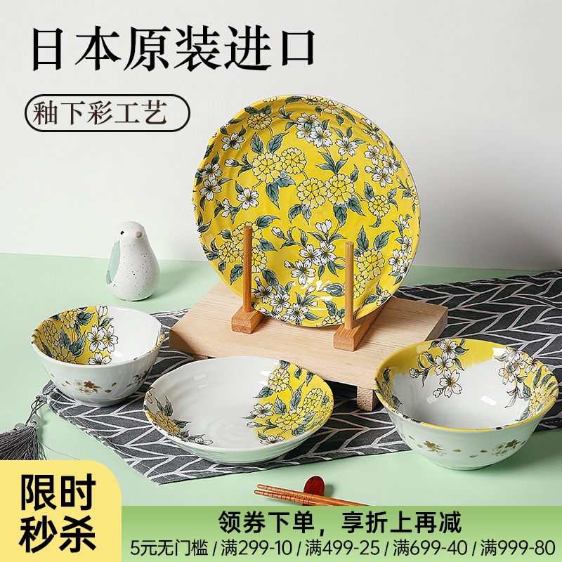 日本制造黄彩椿陶瓷餐具