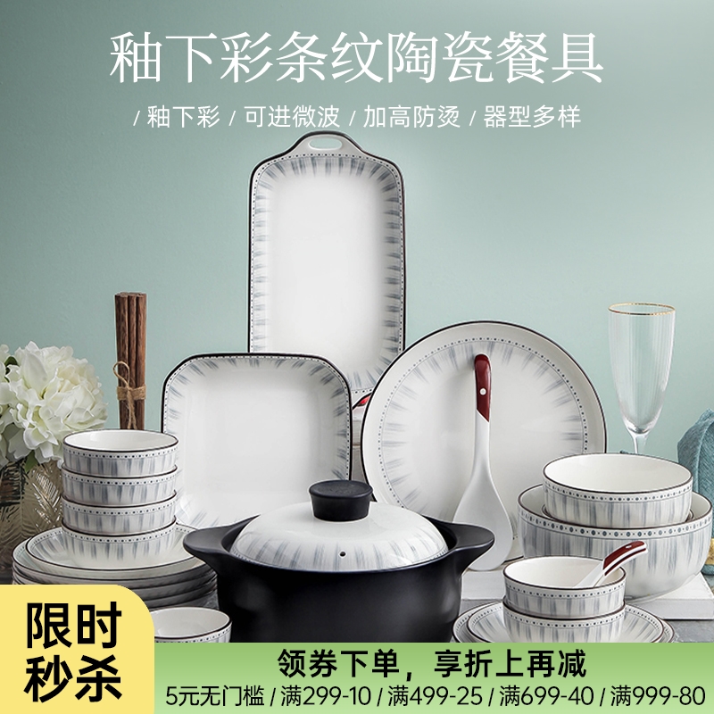 釉下彩条纹陶瓷餐具(蓝线条)