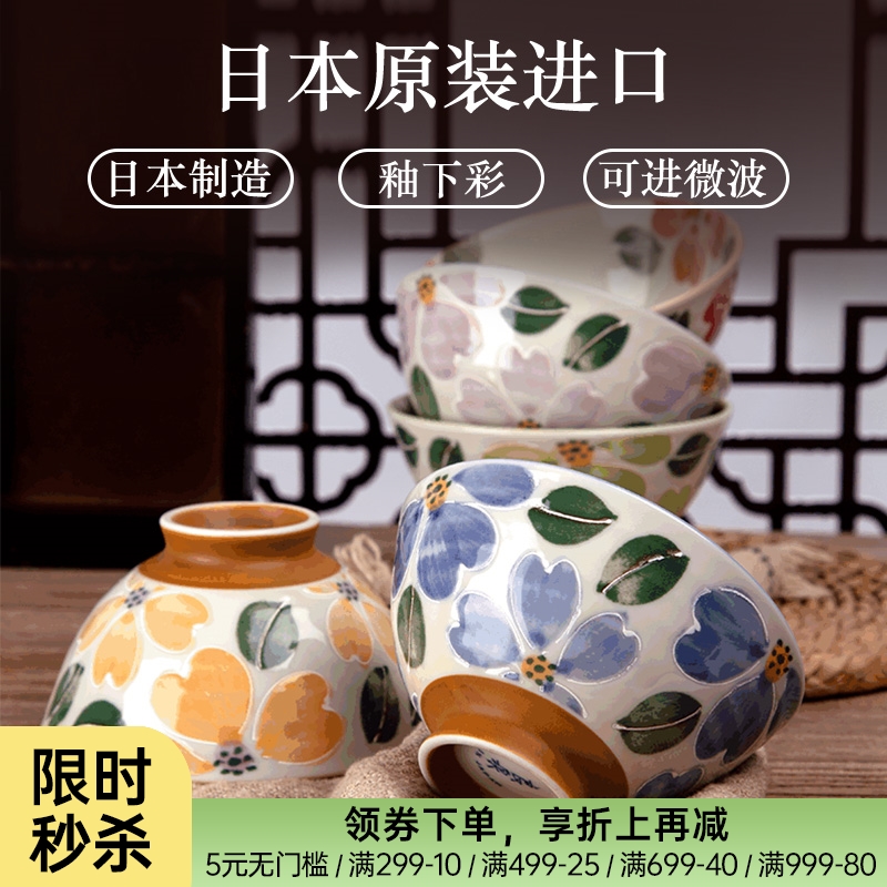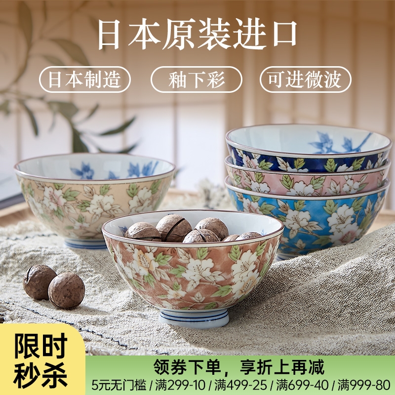 日本制造美浓烧山茶花饭碗