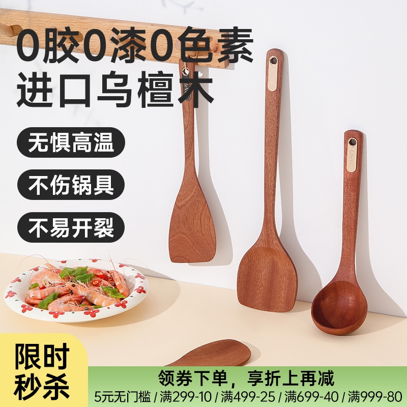 无漆无胶进口乌檀木锅铲