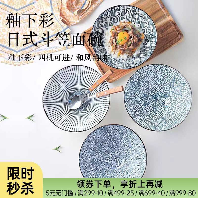 釉下彩日式斗笠面碗