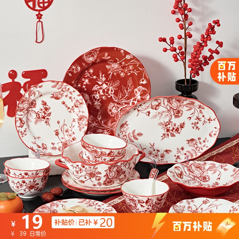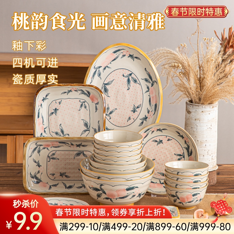 中式美学陶瓷餐具(落日玫瑰)