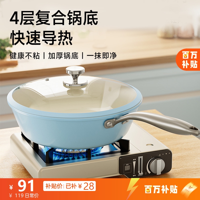 麦饭石不粘炒锅