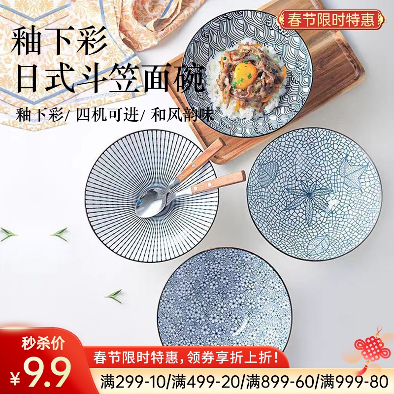 釉下彩日式斗笠面碗