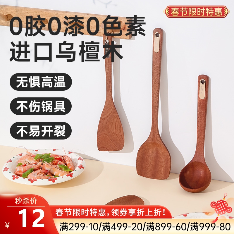 无漆无胶进口乌檀木锅铲