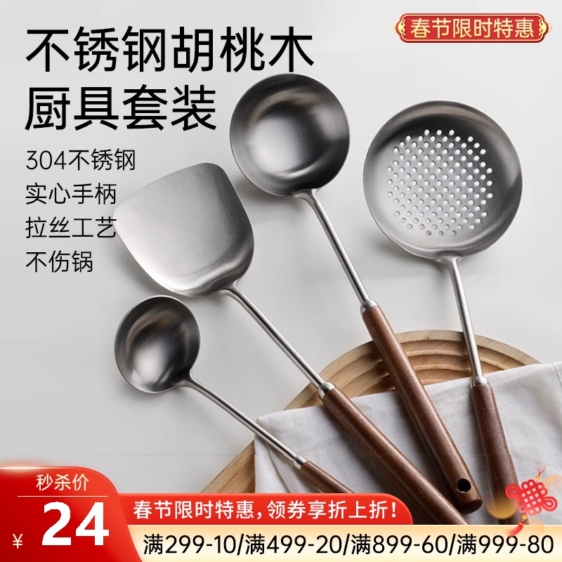 不锈钢胡桃木锅铲
