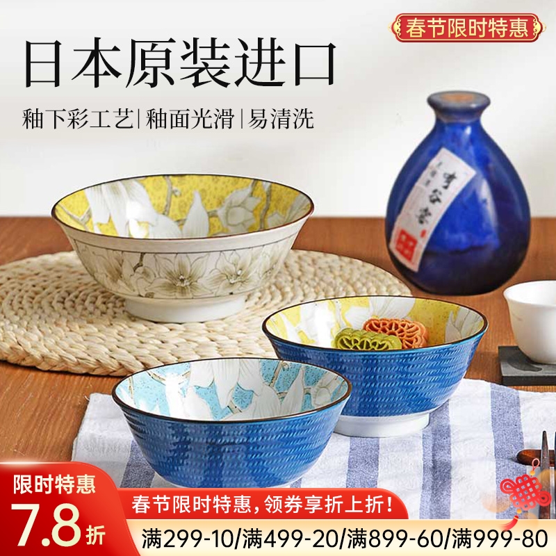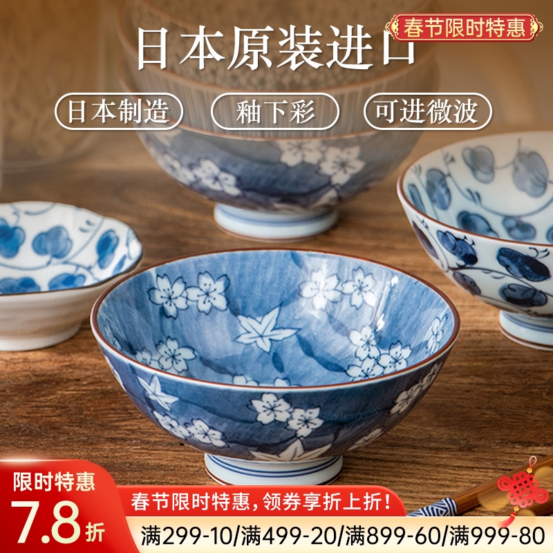 日本制造美浓烧描蓝饭碗
