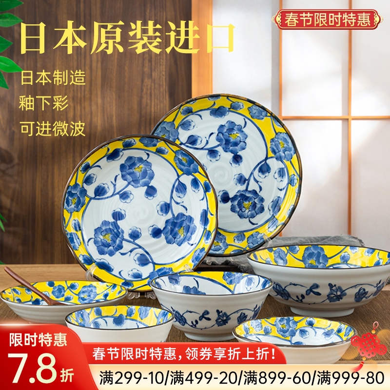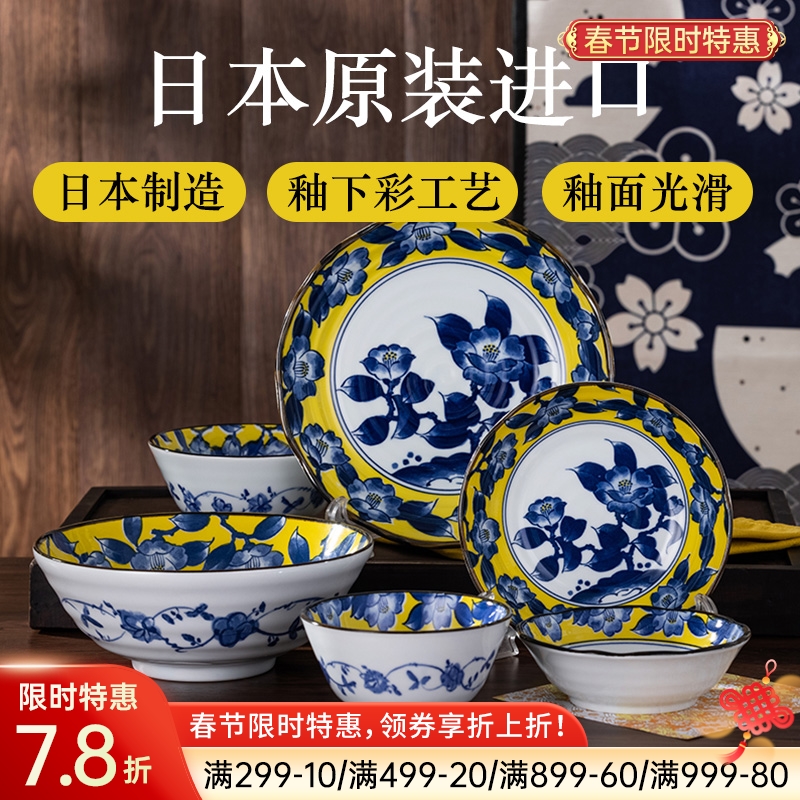 日本制造黄彩椿陶瓷餐具