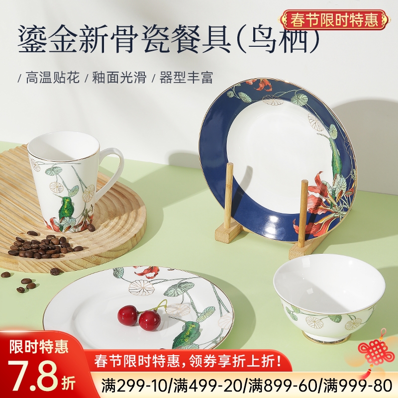 国风陶瓷餐具(青枝翠鸟)