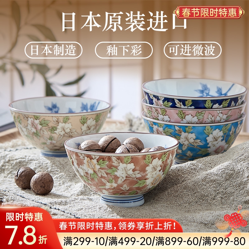 日本制造美浓烧山茶花饭碗
