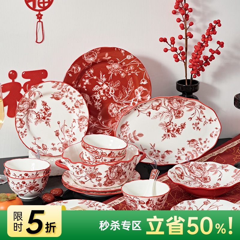 中式美学陶瓷餐具(落日玫瑰)