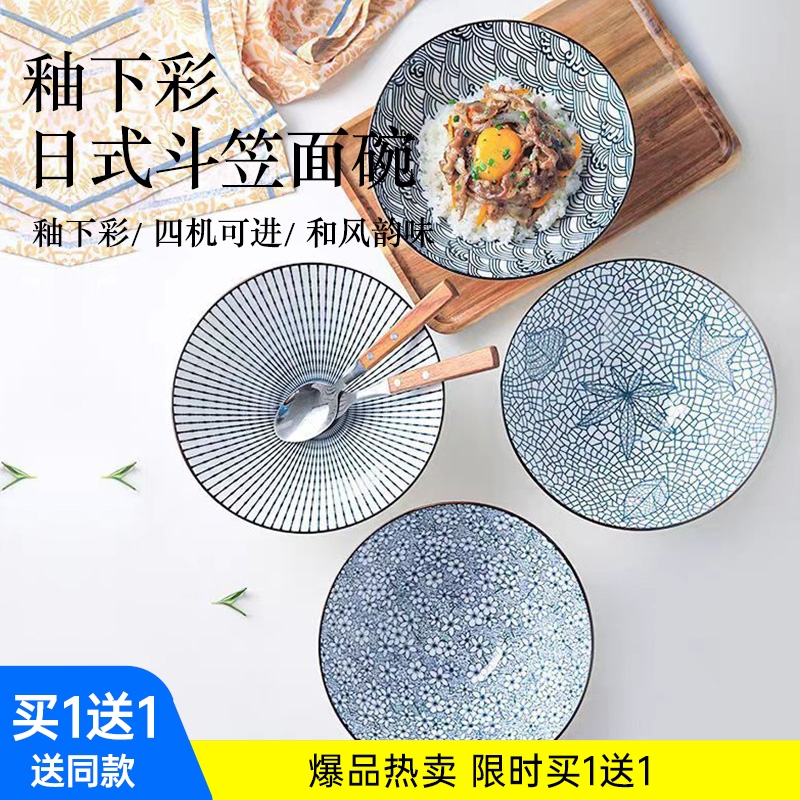 釉下彩日式斗笠面碗