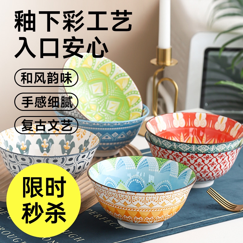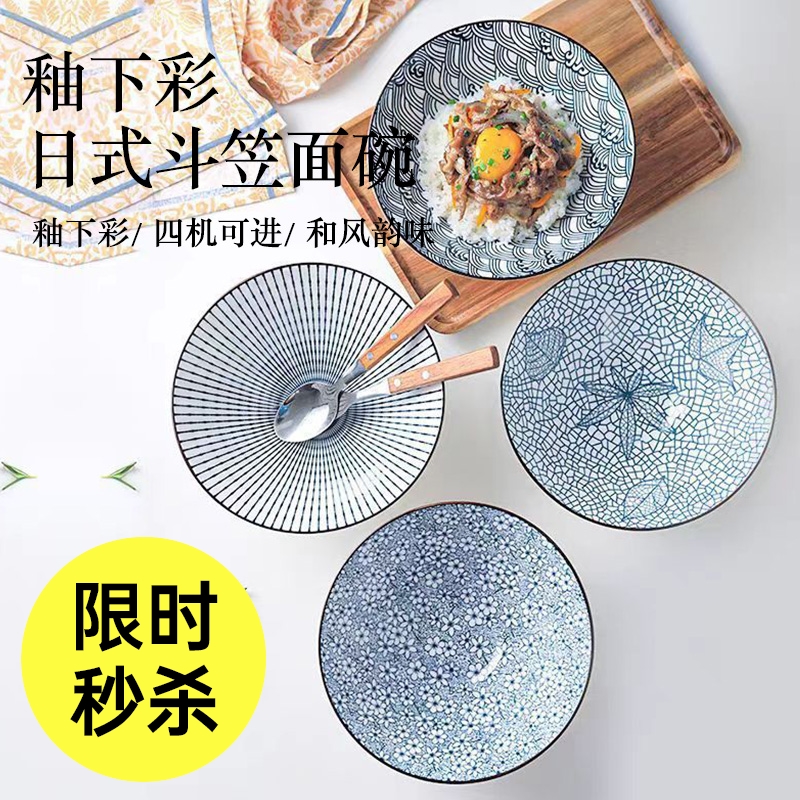 釉下彩日式斗笠面碗