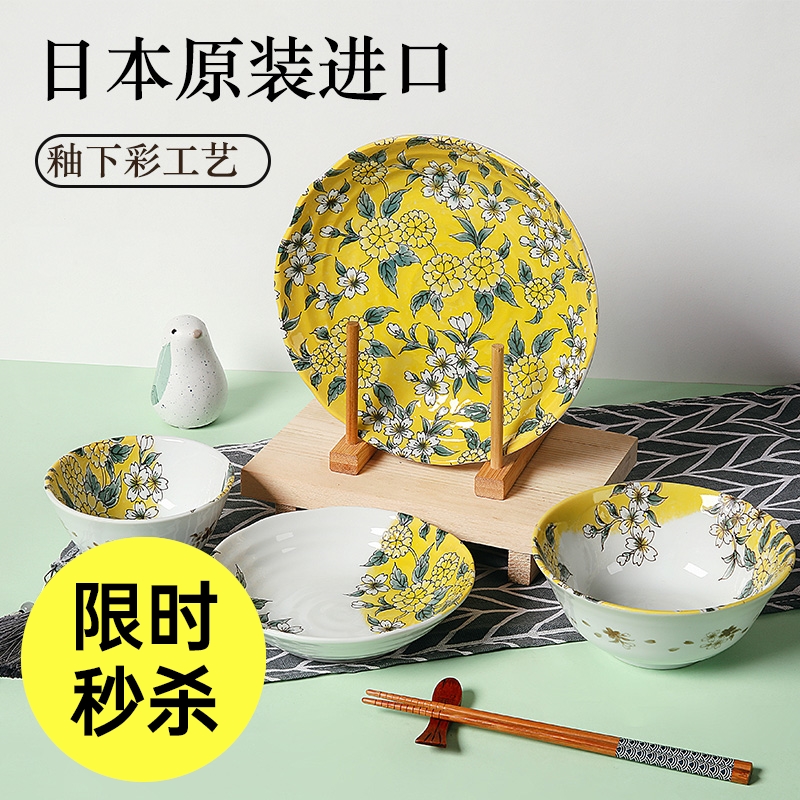 日本制造黄彩椿陶瓷餐具