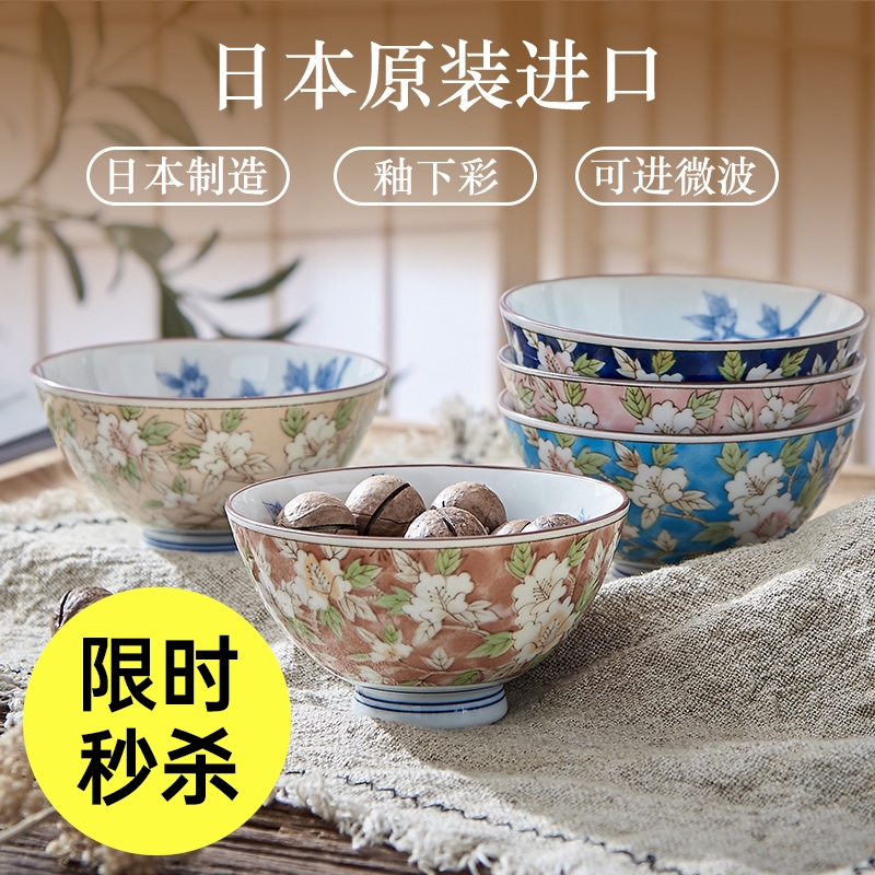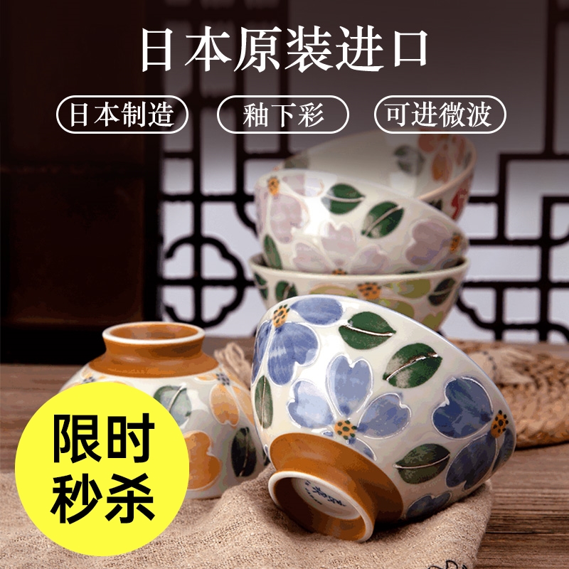 日本制造美浓烧山茶花饭碗