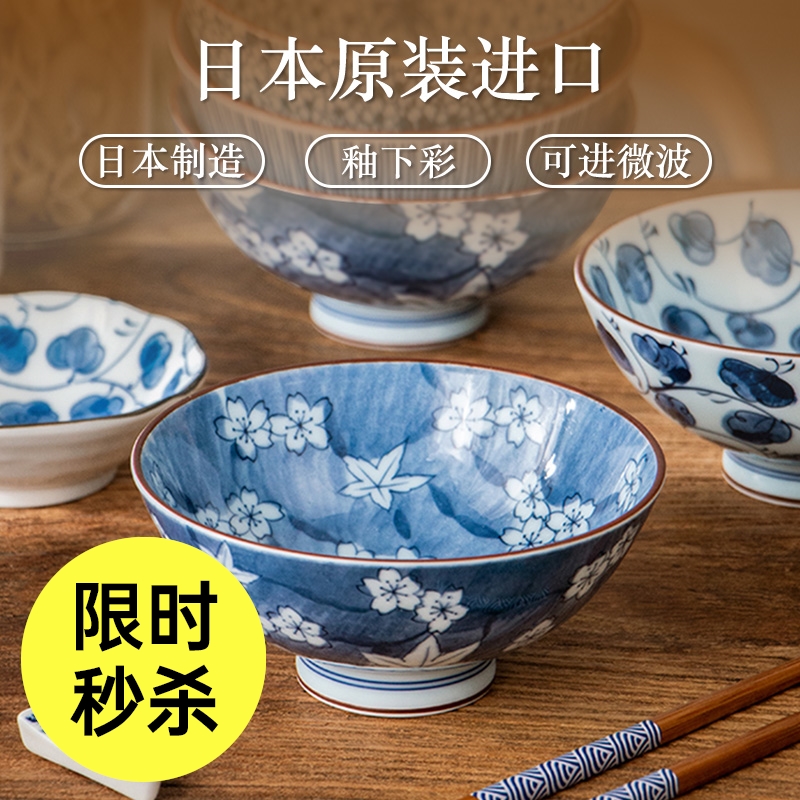 日本制造美浓烧描蓝饭碗