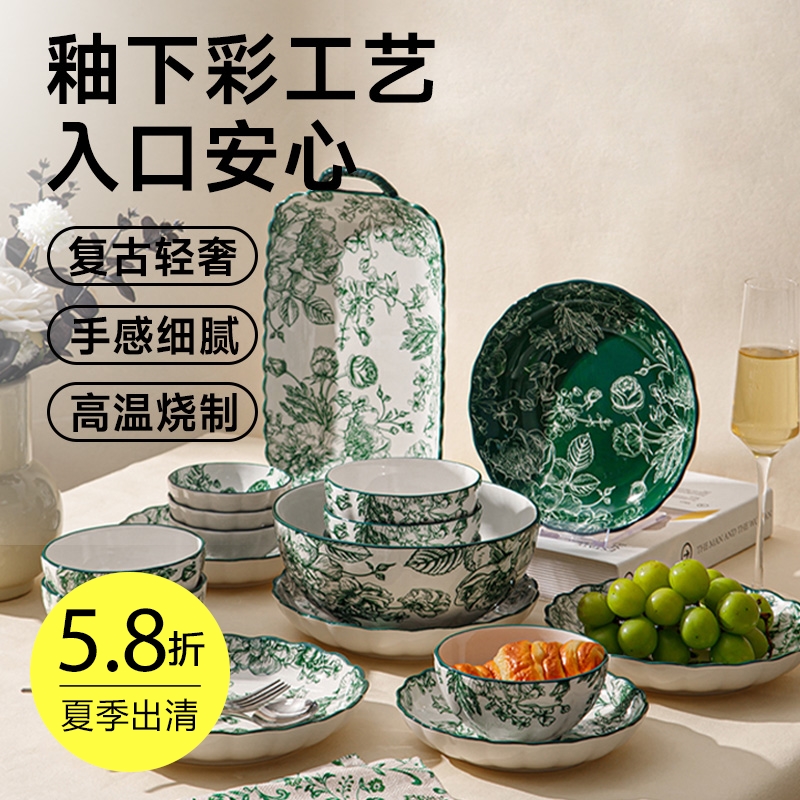 中式美学陶瓷餐具(落日玫瑰)