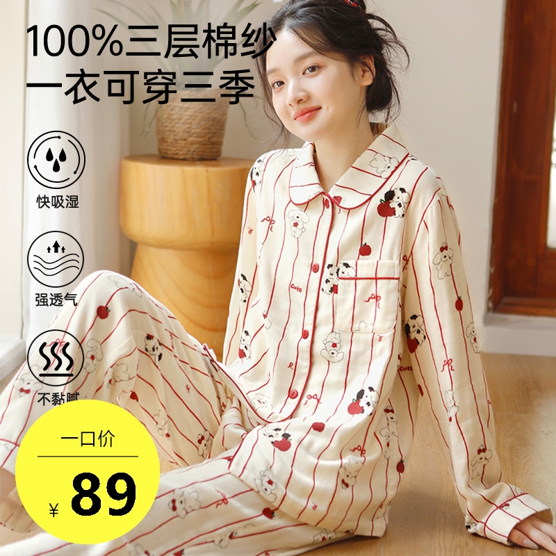 女士全棉抗菌防螨睡衣(爱心斑点狗)