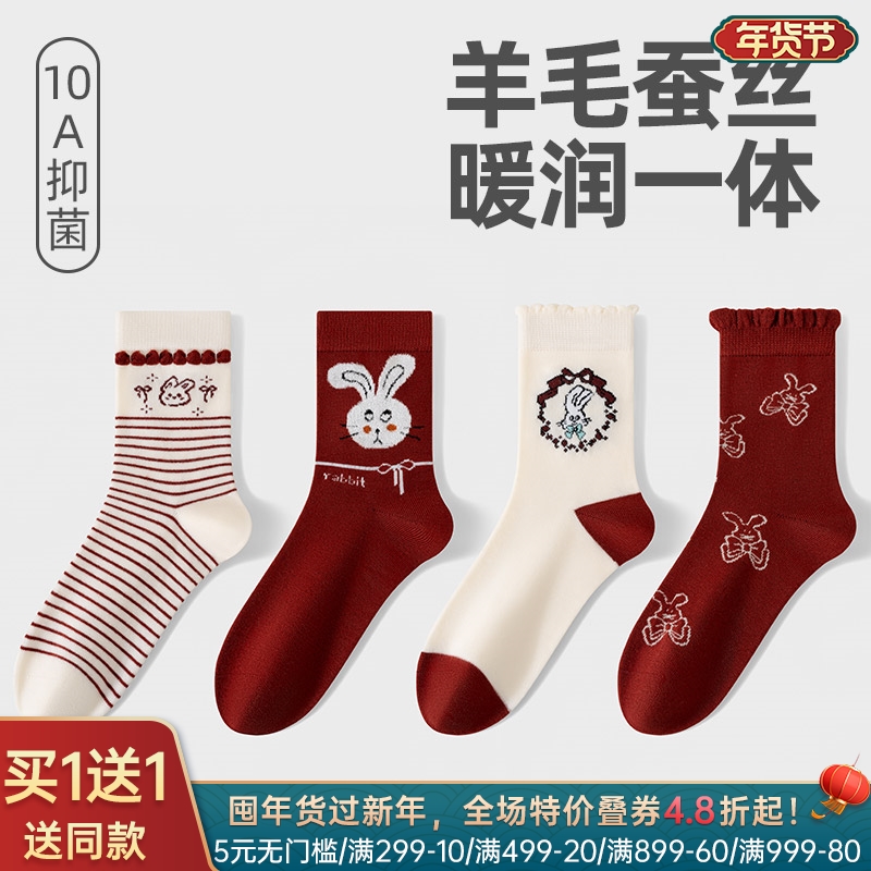 男士鸿运中筒袜(幸运红)