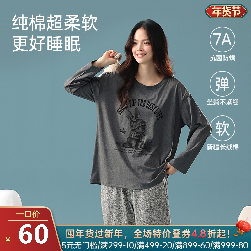 女士全棉抗菌防螨睡衣(水墨兔子)