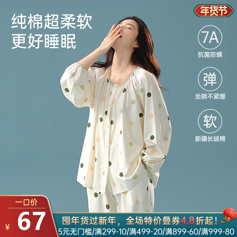 女士全棉抗菌防螨睡衣(彩色波点)