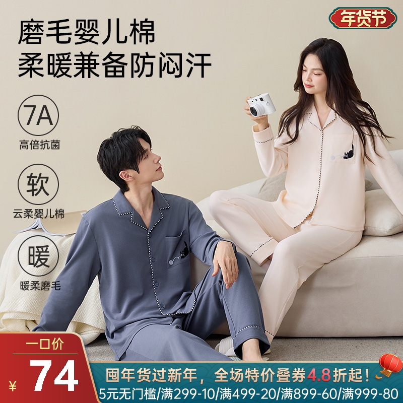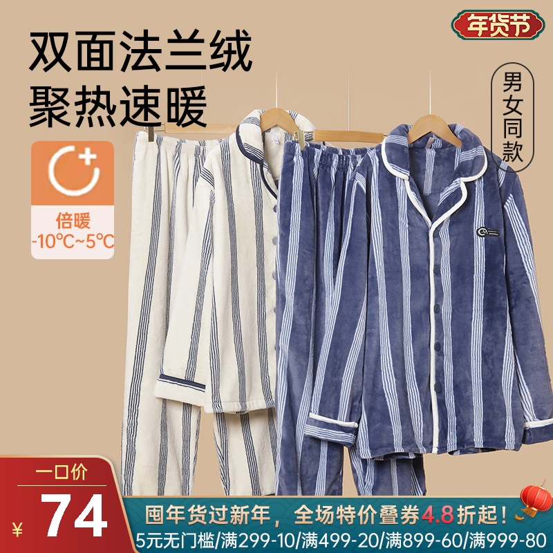 法兰绒保暖开襟家居服