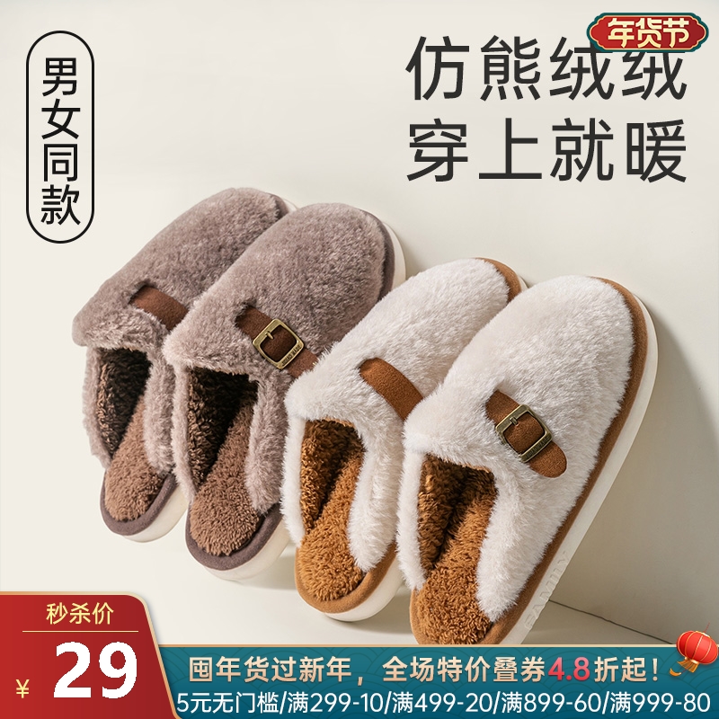 英伦毛绒保暖拖鞋