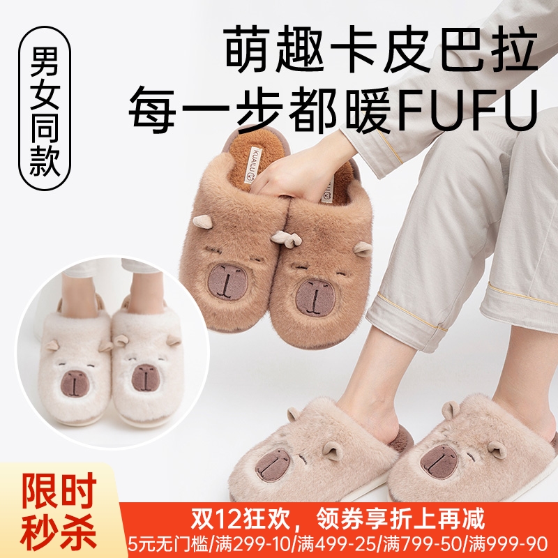 卡皮巴拉毛绒家居拖鞋