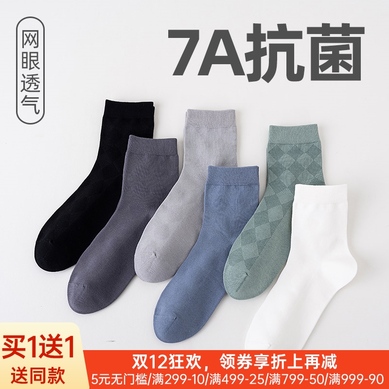 男士休闲网眼中筒袜(纯色)