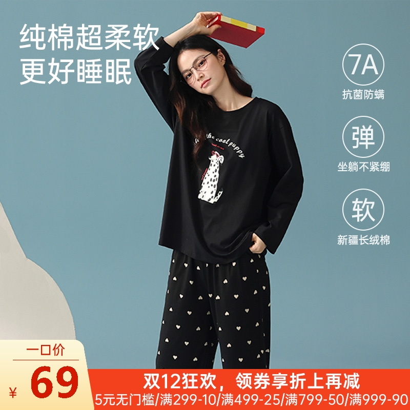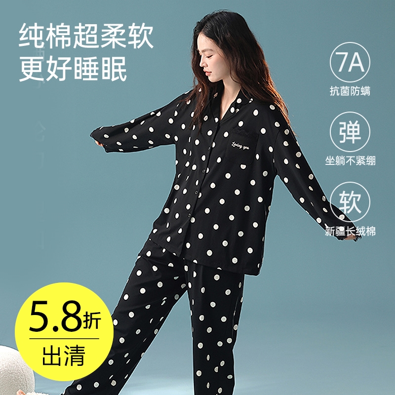 女士全棉抗菌防螨睡衣(素色黑猫)
